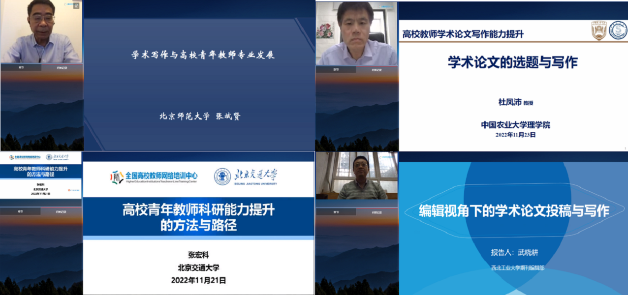 本期培训由北京交通大学张宏科院士、西北工业大学武晓耕副研究员、清华大学刘军强教授等7位专家共同主讲。其中,张宏科院士结合自身的科研经历,以“高校青年教师科研能力提升的方法与路径”为主题,分享了在压力困难重重的科研起步阶段,高校青年教师该如何调整自身的科研心态、如何夯实自身的科研基础素养、如何切实通过学习和实践提升自身的科研能力。武晓耕老师,以学术期刊编辑视角切入,介绍稿件中的常见问题及论文写作过程中需要注意的问题。刘军强教授对学术论文的写作思路、步骤和方法进行系统、全面、多角度的梳理,围绕学术论文的选题、构思与写作等具体问题展开了详细论述。