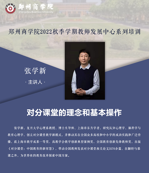 为全面提高beat365师资队伍整体水平,进一步加强beat365骨干教师队伍建设,充分发挥青年骨干教师在人才培养中的示范引领作用,12月2日上午和12月4日下午,教务处教师发展中心举办第六期骨干教师引领力培训班。本次培训班邀请复旦大学张学新教授主讲。