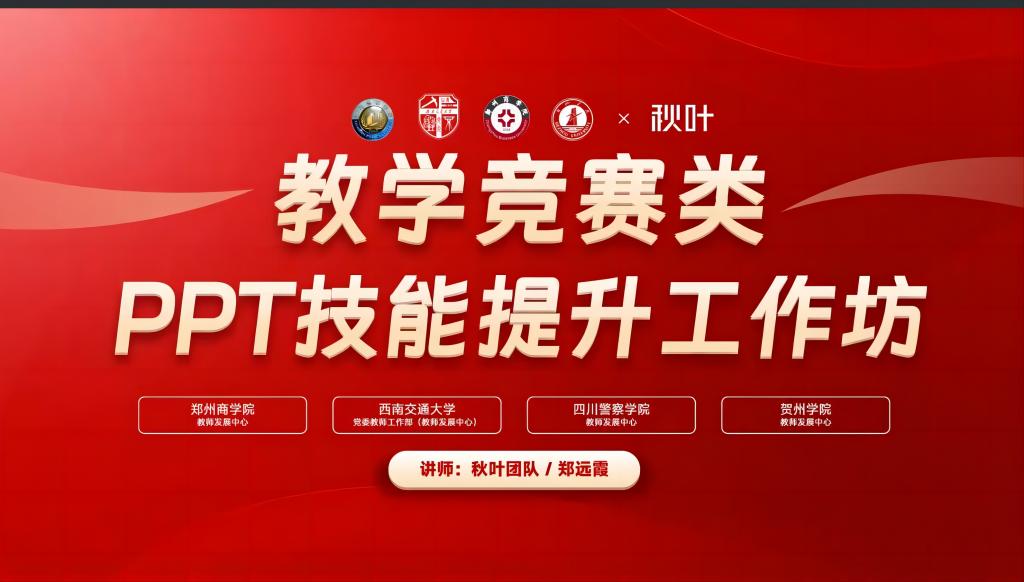 本次讲座由西南交通大学主办、我中心参与协办。邀请秋叶集团企业事务部项目运营总监郑远霞,围绕“又快又好做出高颜值PPT”“工作型PPT应该这样做”等主题,从“技、术、道”方面切入,结合自身丰富制作经验,与参训教师分享打造吸睛封面的4大要素、快速同意PPT设计风格的2个思维、高效提升PPT制作效率的快捷操作。