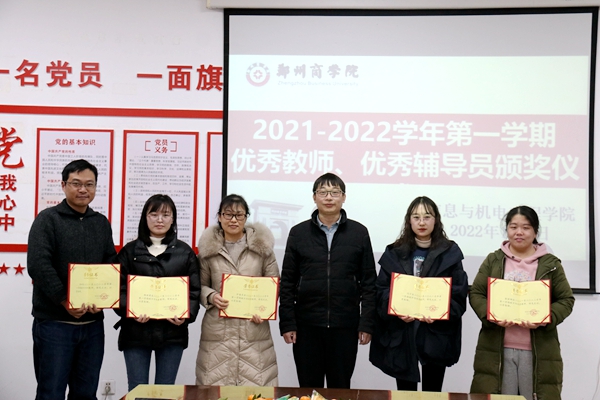 学院在2021年取得的成果离不开各个岗位上辛勤工作的教职工。会上,党委书记李帅宣读表彰决定,由院长张伟华为轩春青、闫宁、韩丽君、张丽娜、郭峰5位优秀教师颁奖,党委书记李帅为张元炯、周利萍两位优秀辅导员颁奖。