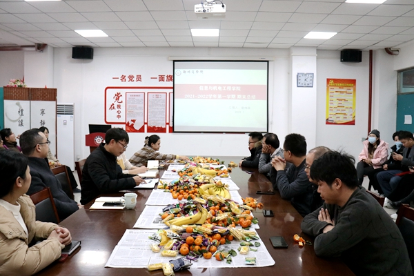 1月2日下午,信工学院召开了2021-2022学年第一学期工作总结会。信工学院院长张伟华,党委书记李帅,副院长林海霞,团委书记张璐阳,全体无课教师及辅导员参加会议。