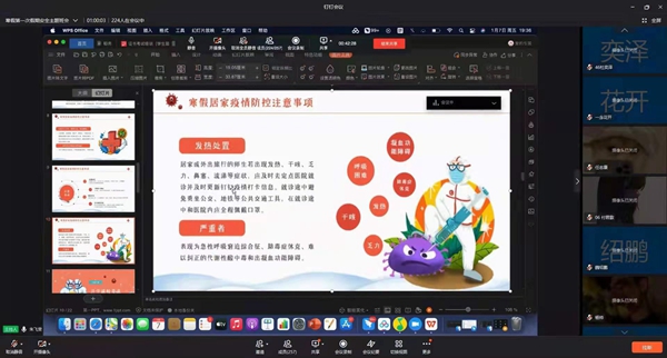 为贯彻落实党中央关于疫情防控的决策部署,进一步做好疫情防控工作,引导广大学生科学认识和正确对待疫情,合理安排假期生活,增强班集体的凝聚力和向心力,坚定信心、共克时艰,1月5-8日,我院各年级各班级组织召开“合理规划假期,做好个人防护”主题班会。班会由各班辅导员主持召开。
