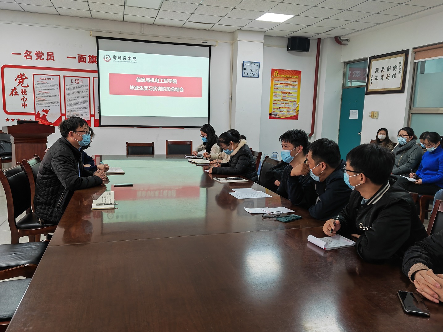 3月30日,信工学院在四号教学楼会议室举行实习实训阶段总结会。信工学院张伟华院长主持会议,副院长林海霞,教学秘书王玉玮,教学干事李楠楠,实习实训指导老师及毕业班辅导员集体参会。