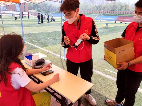 4月6日下午信工学院各党支部自发组织献出自己的充电宝,为核酸检测人员和扫码的志愿者带来极大的方便。作为当代大学生我们要尽自己力所能及,为新型冠状病毒做斗争做出一份贡献。在核酸检测过程中我们要始终保持秩序,听从志愿者的安排,帮助白衣天使与时间赛跑、与病毒作斗争。