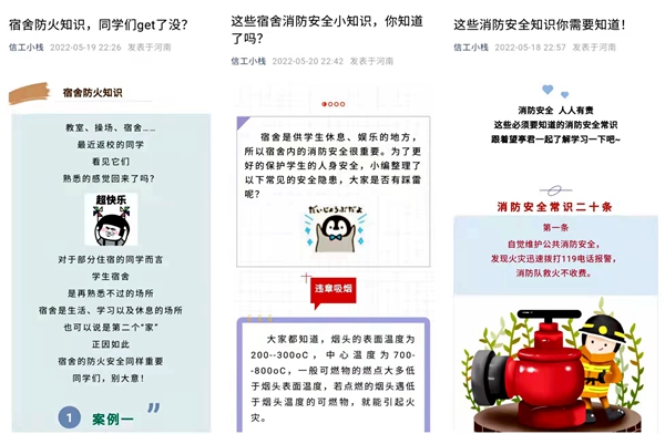 6. 利用微信公众号进行“消防安全”相关知识的推送:“宿舍消防知识,同学们get了没?”“这些宿舍消防安全小知识,你知道了吗”“这些消防安全知识你需要知道!”