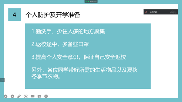 此次线上主题班会的顺利召开,帮助同学们了解到许多开学的注意事宜,不仅增强了同学们的疫情防控意识,也为返校复学工作筑牢了安全防线。相信在各班同学和老师们的积极配合下,我院学子都能够顺利安全返回校园。