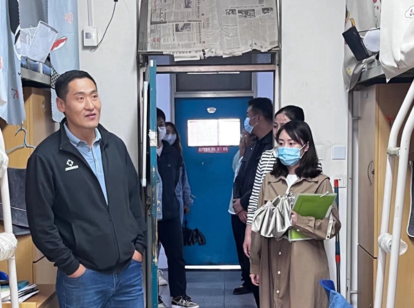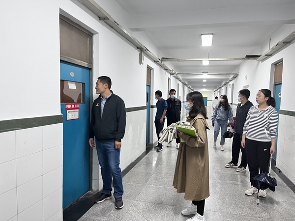 周余书记与宿管员就安全隐患、办事流程等方面进行交流,并对宿舍管理服务工作提出了合理化建议和意见,不断提升宿舍服务管理水平,齐抓共管,为学生营造良好、温馨、和谐、安全的居住环境。