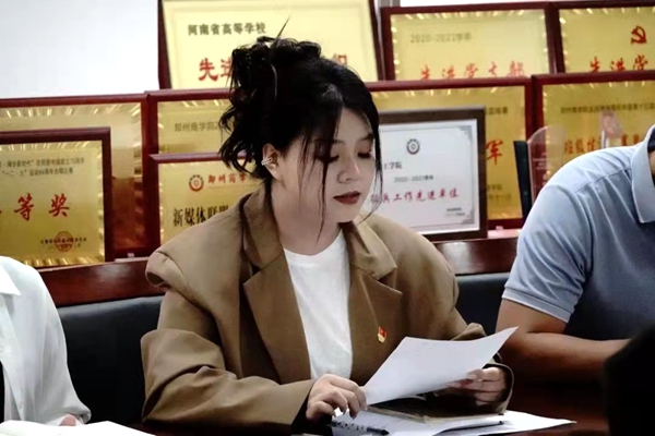 杨瑞瑞同志宣读《信工学院党员先锋岗考核办法》
