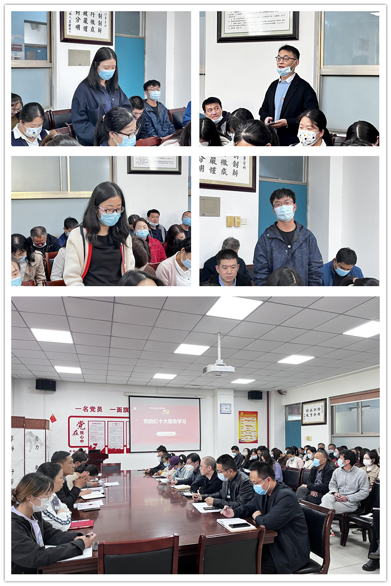 正值喜迎党的二十大,认真学习党的二十大报告的活动期间,信工学院先播放了一组党的二十大主题的学习视频。首先是关于报告政策解读的新闻视频,其次是关于思政课榜样路丙辉教师及张桂梅校长的相关报道。然后我院张伟华、龙瑞、李姗、温文豪、曹飞扬等五位同志依次发言,分享了自己学习党的二十大报告的心得。