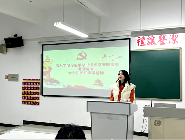 11月12日,信工学院学生第三党支部以“9”个关键数字为重点,领学党的二十大报告,拉开信工学院学生第三支部学习党的二十大精神的热潮。11月21日,信工学院学生第三党支部支部组织召开“深入学习习近平总书记视察安阳重要讲话精神,大力弘扬红旗渠精神”专题组织生活会。大家进行交流学习,纷纷表示要与祖国同心,与时代同行,发扬红旗渠精神,不忘初心,砥砺前行,为实现中华民族伟大复兴汇聚起踔厉奋发的磅礴力量。