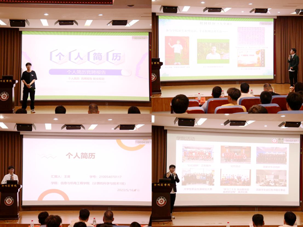 为深入贯彻落实党的二十大精神,落实就业优先战略要求,推进学院全程化就业创业指导工作,帮助学生树立正确的就业观,不断提高就业技能,设计好自己的入职名片,提高就业竞争力,2023年5月16日晚,信工学院第一届“‘简’自我风采,‘历’职场未来”简历制作大赛在图书馆五楼报告厅成功举办。