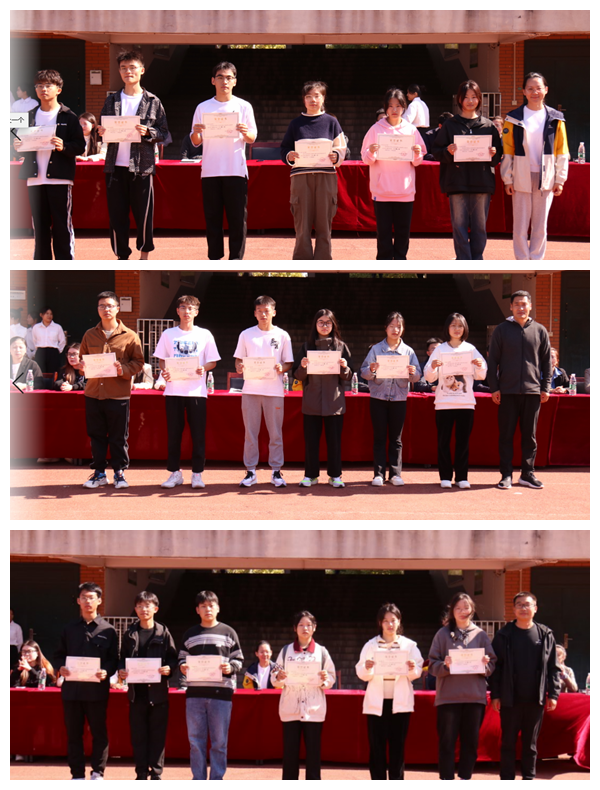 经过两天紧张激烈的角逐,此次运动会参与737人,志愿者百余人,大家奋勇拼搏、不畏艰难,取得了十分优异的成绩。闭幕式上,信工学院团委书记张璐阳宣布了比赛成绩和获奖名单。获奖运动员及班级代表在掌声中上台领奖,院长张晓冬、党委书记周余、副院长张伟华为其颁发奖状并合影留念。