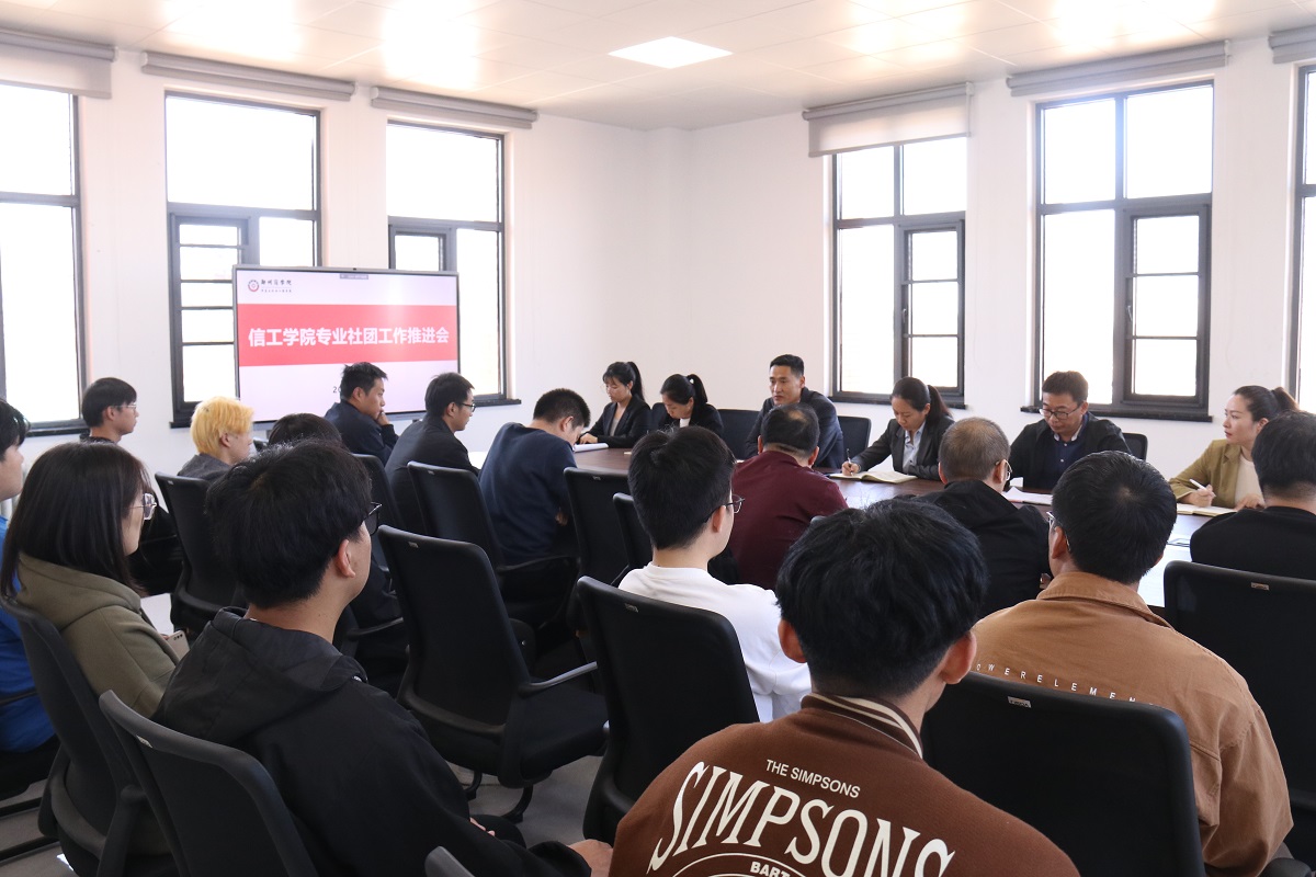 11月1日,信工学院在三彩校区信工大楼三楼会议室召开了信工学院专业社团工作推进会。信工学院院长张晓冬,党委书记周余,副院长张伟华,团委书记张璐阳等领导出席了会议。