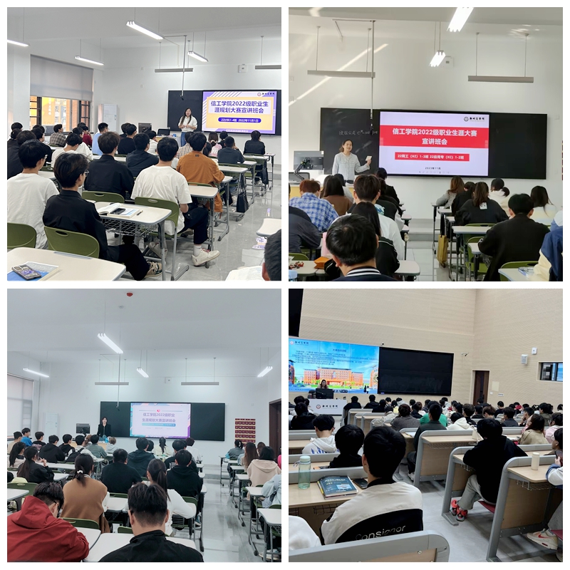 我院将全程化就业创业指导活动贯穿每个学期中,针对不同年级学生特点,有针对性地开展系列活动,有效提升了学生的就业意识和就业能力。本次职业生涯规划大赛宣讲动员会,调动学生的积极性,促使信工学子在自我认知的基础上,根据自己的兴趣爱好、专业特长、知识结构,结合社会环境与市场环境,对未来要从事的职业作一个全方位的规划,树立正确的职业发展路线。