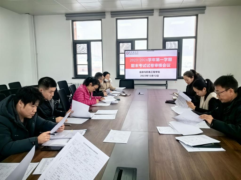 为进一步落实学校“严教”“严考”工作要求,更加规范考试命题工作,高质量完成本学期期末课程考核。12月12日下午,信工学院在三彩校区信工大楼会议室召开了2023-2024学年第一学期期末考试试卷审核会议,严把试题质量关。张晓冬院长、张伟华副院长、质量监控联络员任孝锋老师以及各教研室主任参加了本次会议。