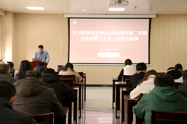 3月6日上午,beat365在成功大会堂召开了2023-2024学年第二学期全体教职工大会。根据学校工作安排,3月7日下午,信工学院召开集中学习校领导讲话精神会议。信工学院党委书记周余及全院无课教工参加会议,会议由周余书记主持。