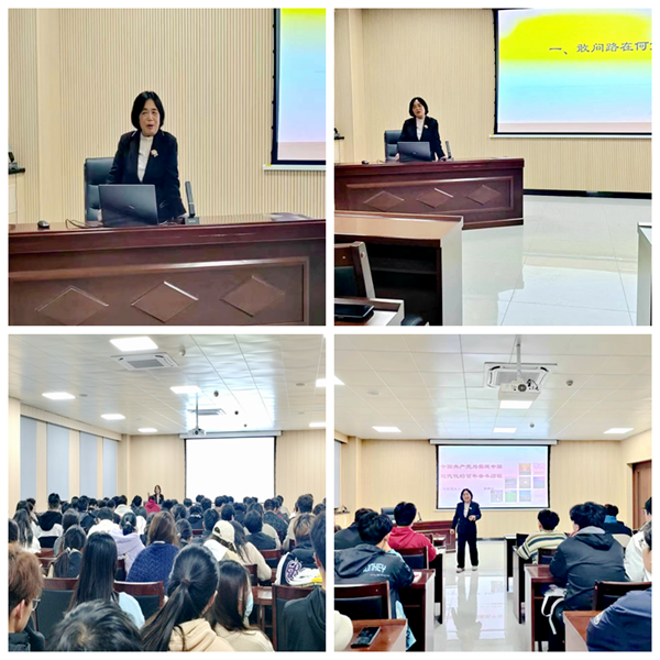 张老师首先抛出了“敢问路在何方”的问题让同学们思考,接着介绍了仁人志士对中国“路在何方”这一问题的回答,讲述了中国共产党的成立,以及党领导全国各族人民为实现中国现代化所进行的奋斗历程。随后指出,一个世纪以来,我们党带领人民开创了中国特色社会主义道路,并在实践中不断发展和完善这条道路。改革开放所取得的一系列丰硕成果也向世界宣示:中国不走封闭僵化的“老路”,也不走改旗易帜的“邪路”。