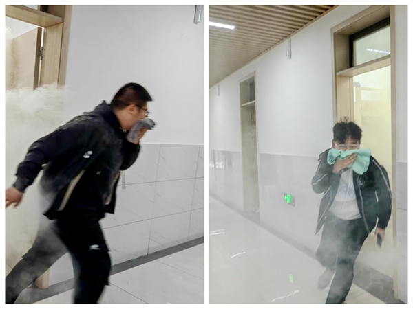 学生有序离开火灾现场