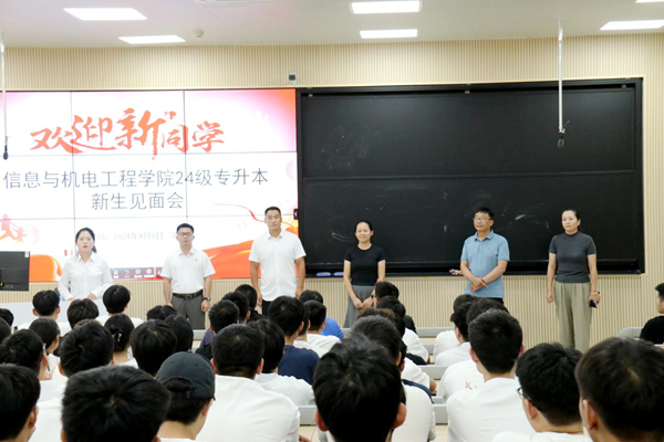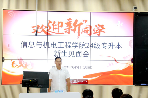 为帮助信工学院2024级专升本新生们更好地适应大学生活,引导学生们树立正确价值观、明确学习目标,激发青春活力,信工学院张晓冬院长、党委周余书记、张伟华副院长、团委顾成健书记、教学秘书王玉玮老师以及2024 级专升本辅导员于9月5日16:00在信工大楼JT101与新生们开展了新生见面会。旨在加深新生对大学教育的理解,也为他们即将展开的校园生活奠定了坚实的基础。接下来的日子里,辅导员将陪同新生们一起成长,见证他们的每一次进步与蜕变。