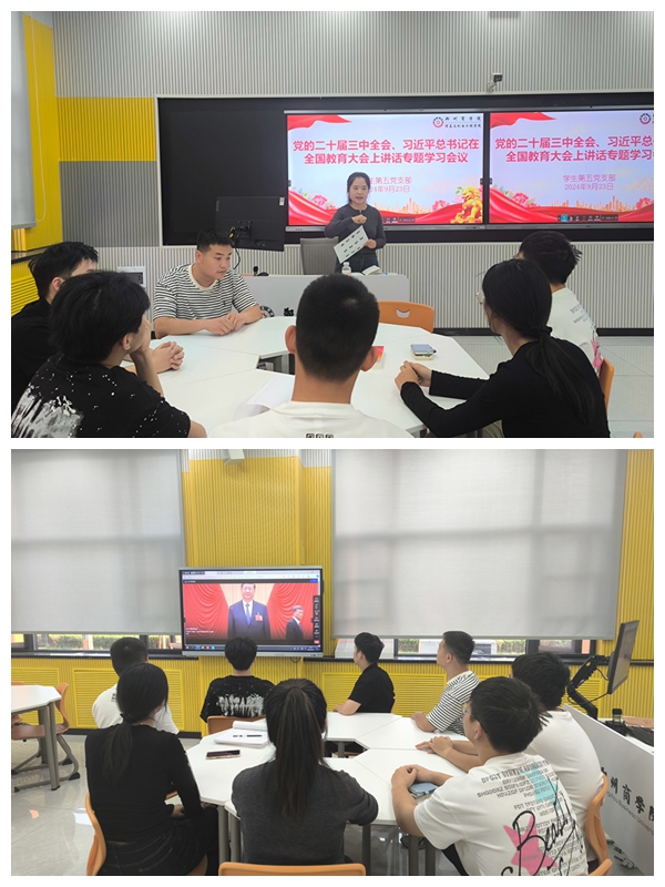 9月23日,信工学院学生第五党支部在A103教室召开9月份主题党日活动,支部书记孔颖组织支部党员学习党的二十届三中全会会议精神,完整准确贯彻新发展理念,坚持稳中求进工作总基调。使支部党员更加坚定对党的信仰和对社会主义事业的信心。