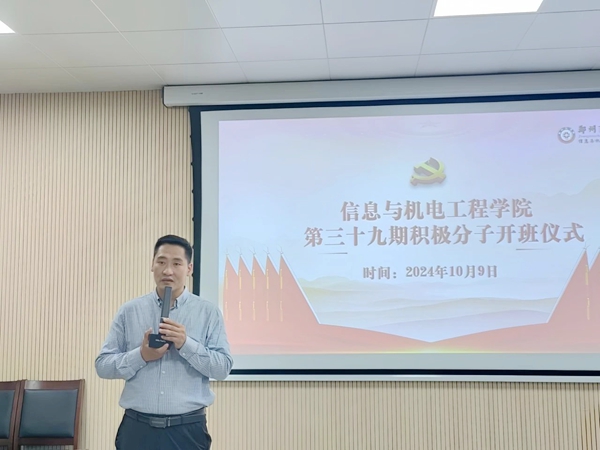 为做好我院入党积极分子的培养教育工作,提高入党积极分子的政治素质和理论水平,严格把好党员发展“入口关”,提高党员发展质量,信工学院于2024年10月9日在信工大楼会议室举行了“信工学院第39期入党积极分子业余党校培训班开班仪式”。参加开班仪式的有信工学院党委书记周余、党委组织委员杨瑞瑞以及第三十九期入党积极分子全体成员,会议由党委组织委员杨瑞瑞同志主持。