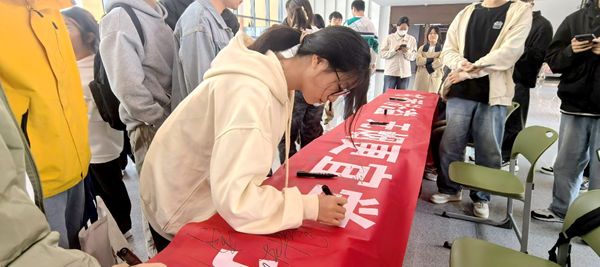 此次活动在信工大楼大厅处设置签名展板,号召同学们在“书香满溢,无烟更宜学;拒绝香烟,筑清新校园”的横幅上签名,表达对禁烟活动的支持。