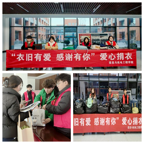 为传递爱心与温暖,让闲置衣物发挥更大的价值,11月28日至11月29日,“冬暖寄情,爱心捐衣”冬季温暖月活动在信工大楼一楼举办。学院学生通过班级群通知,到梦空间活动等途径了解此次活动的开展及意义,纷纷为社会贡献自己的一份力量。据统计,参加捐衣活动共计150余人,捐衣重量达76公斤,并通过官方平台打包成包裹发往云贵地区需要帮助的人。