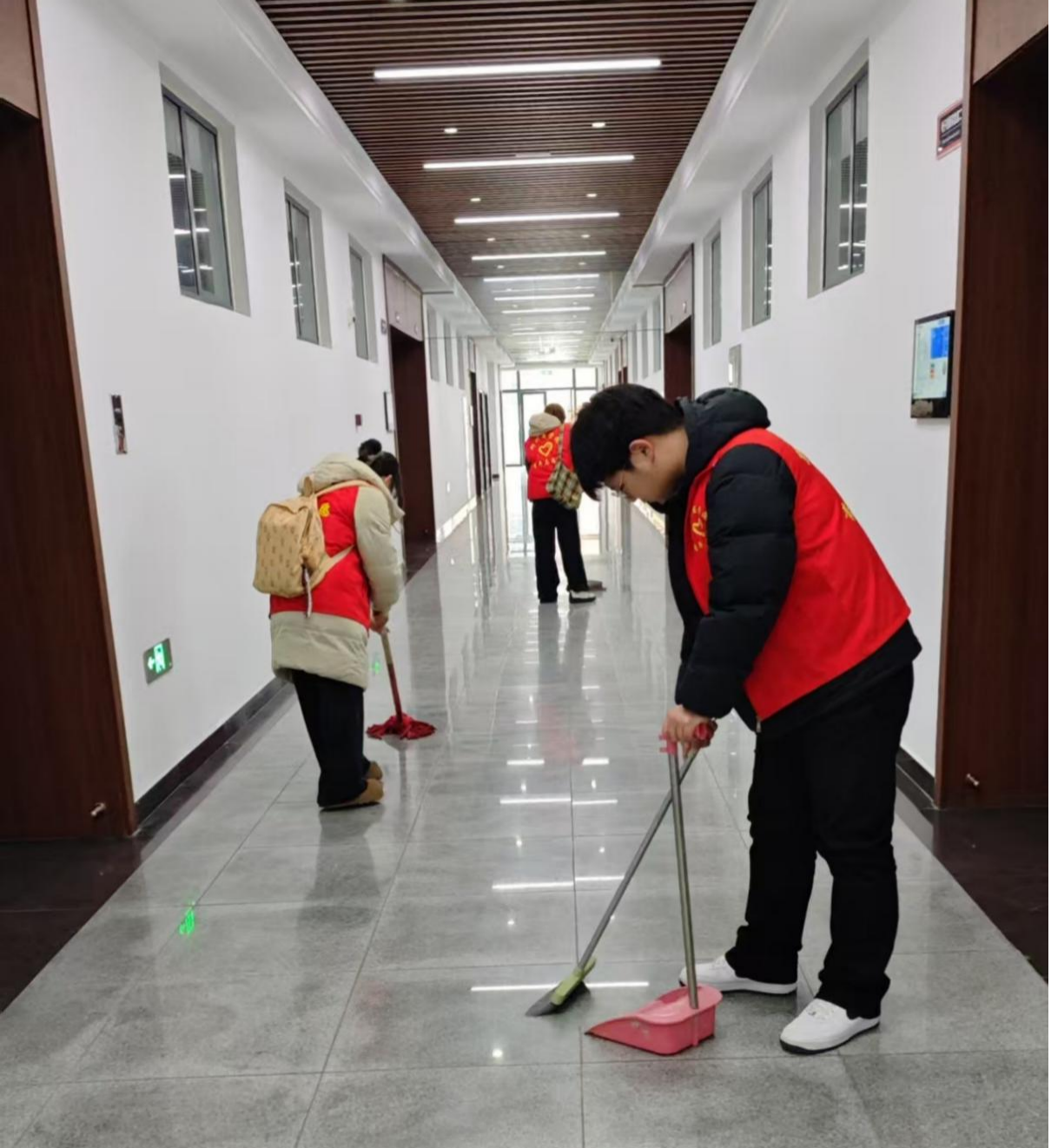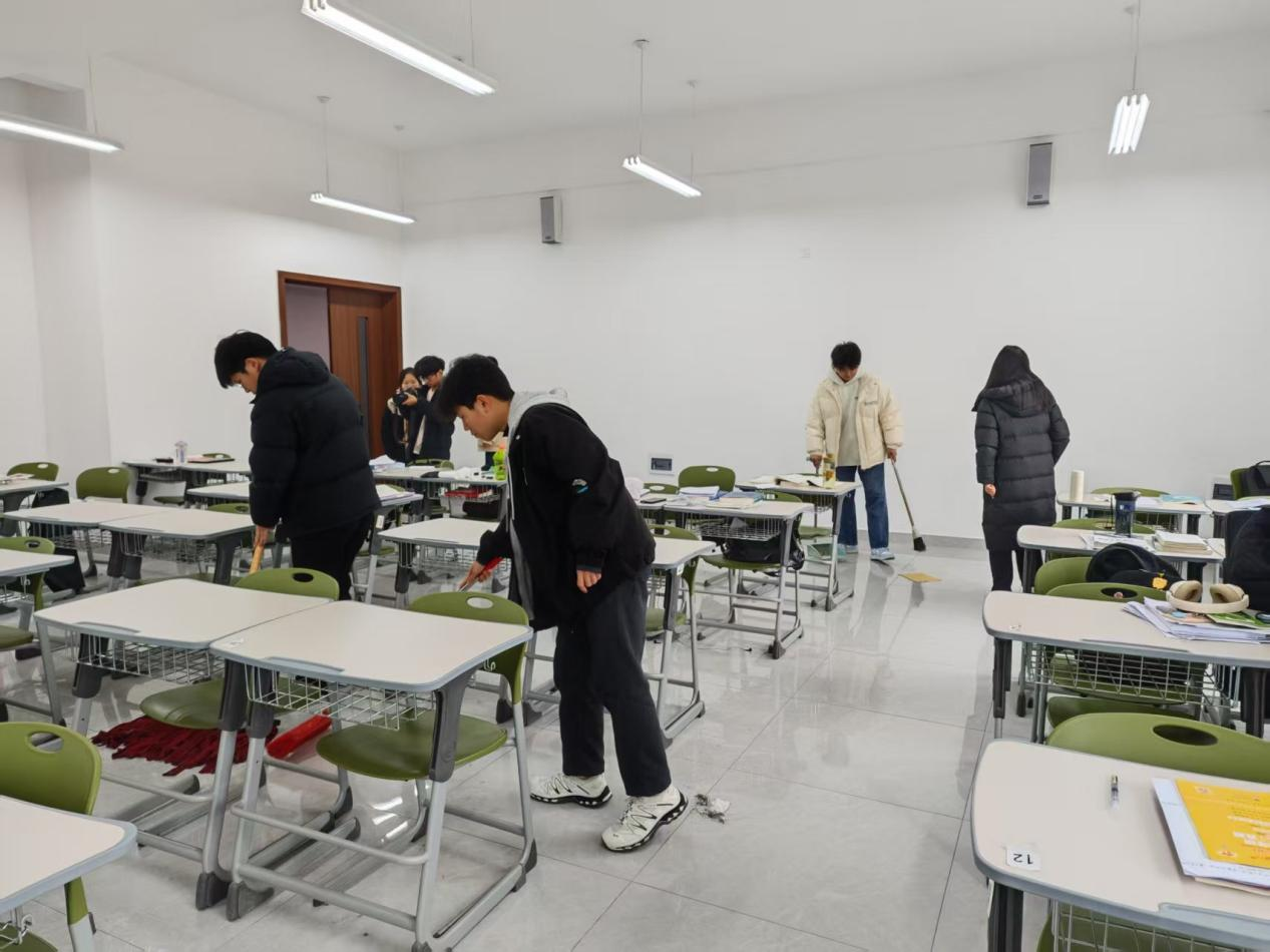 为深入贯彻落实立德树人根本任务,充分发挥劳动育人的重要作用,3月4日中午,大数据学院组织学生志愿者、党务助理团以及信兵连成员开展了教学楼考研自修室及办公室的清扫工作,以实际行动践行劳动精神,弘扬劳动美德。