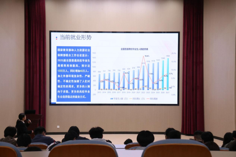 本次主题讲座为学生未来发展指明道路,帮助学生更好地规划未来,在校园与职场间架起一座坚实桥梁,助力学生实现从校园到职场的顺利过渡。