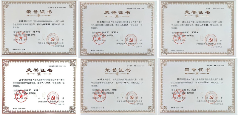 7月11日至13日,线下赛在河南郑州轻工业大学举行。在我院任俊军,徐纤纤老师的带领下,网络安全社团三支参赛队伍参与其中,经过八个小时的激烈比拼,取得了不俗战绩。线下赛要求3人组队参赛,竞赛期间不得更换队员,采用现场实战竞赛模式,对团队协作能力、技术应用水平及应急处置能力提出了高标准要求。其中,由郑迪、张卫超、孙靖雨组成的参赛队伍,以及由薛沛浩、苏睿恒、田振龙组成的参赛队伍,均荣获团队赛二等奖(其中除郑迪外,其余7位同学均为大一新生);由徐芊芊、宋子昂、韩佳乐、韩博组成的参赛队伍在御网杯俱乐部赛道,积累了宝贵经验。
