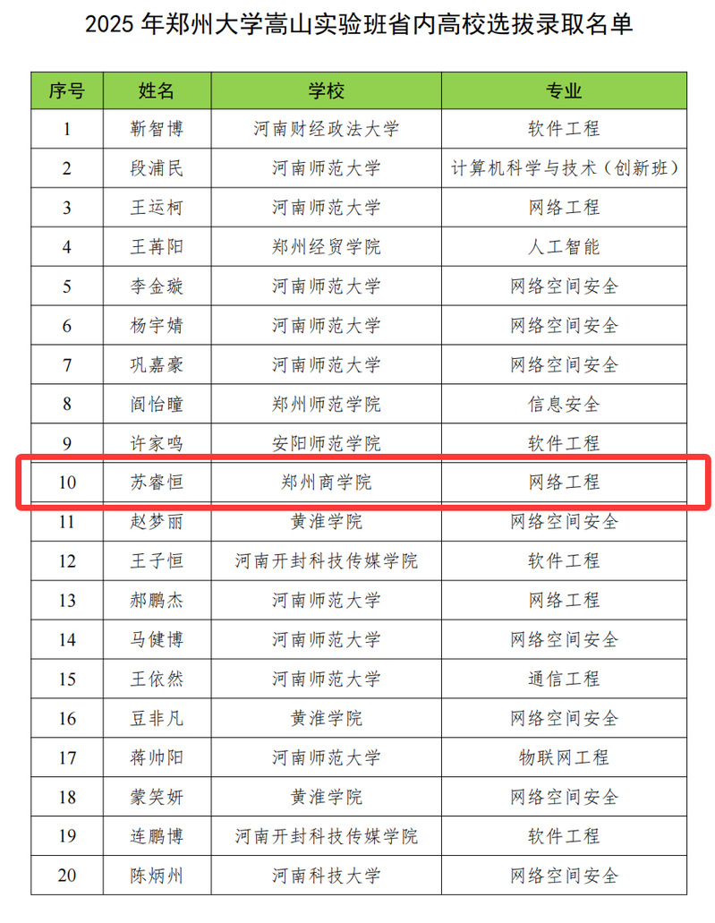 喜报:大数据学院网络安全社团育人模式助力学子苏睿恒荣获郑州大学“嵩山实验班”名额