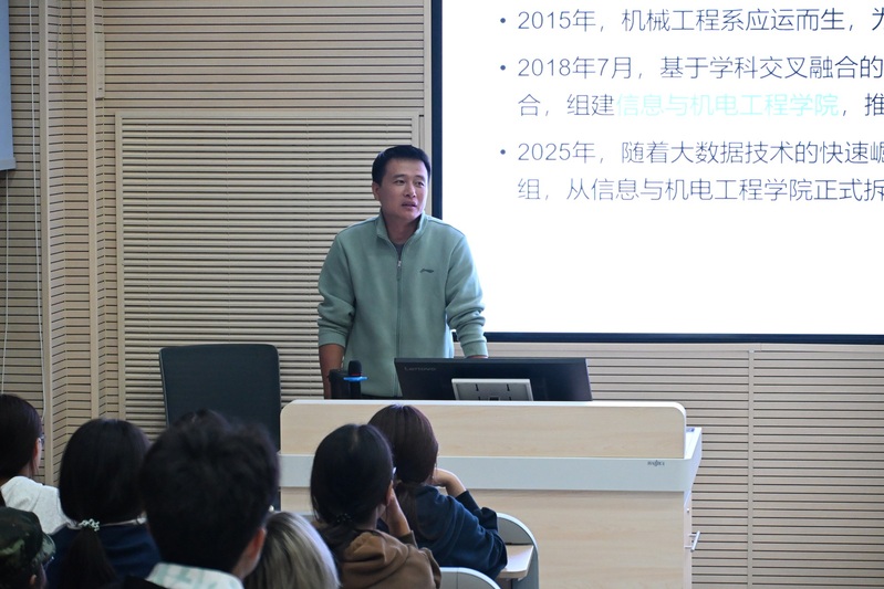 数据科学与大数据技术专业教研室主任李晓东围绕专业介绍、专业方向、专业的发展形势、毕业生就业前景、如何规划大学生活五大核心模块展开详细讲解。最后,他以“不懈努力成就目标”为核心寄语,激励新生在大学期间明确方向、持续奋进,逐步实现个人成长与职业发展的初步规划。