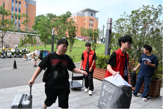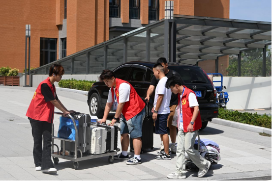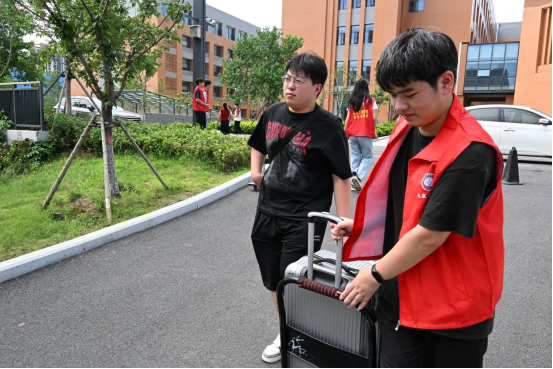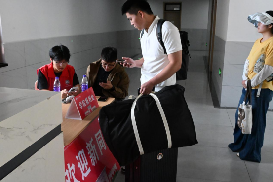 学生志愿者提前在学校大门前、宿舍楼前等地方摆放桌椅、搭建帐篷,设立“新生接待服务站”。大家分工协作,一部分志愿者引导队伍、核验信息,另一部分主动帮助新生搬运行李,并陪同前往宿舍,一路介绍校园布局和生活服务。从报到注册到入住指引,志愿者们以周到细致的服务,保障了整个报到流程井然有序,也让初入校园的新生倍感温暖。