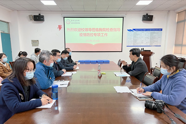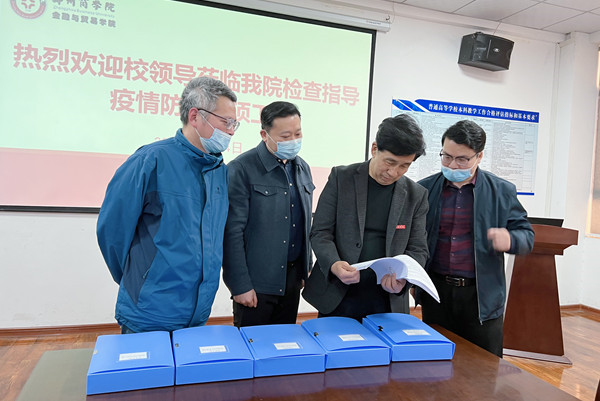 在督导调研过程中,师校长分别查看三个单位防疫资料,各单位相关负责人详细汇报了部门防疫工作情况,严格落实省教育系统疫情防控“10+7+8”要求,依据单位工作实际,建立各单位防疫体系。教务处做好本部门职员防疫的基础上,科学研判疫情形势,做好全校教学调整、毕业生相关工作、考级考证工作的协调安排。金贸学院通过“四管一教”,加强日常教学、师生出入校、公共场所、师生在校安全管理,组织防疫知识、应急演练宣传教育,在严防严守、压实责任的同时,深入宣传、强化意识。建工学院加强疫情防控期间教学管理,通过教风学风协同建设,多种线上形式校园文化活动管理,发挥党员学生干部带头作用等,疏导师生身心压力,稳定教学秩序,保障教学质量。