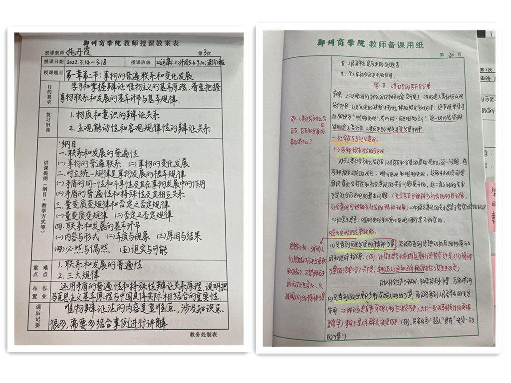 借助此次走访各院部进行检查的时机,师校长对各院部的教学资料准备情况作了点评,各院部根据专业不同,教案的撰写各有特色,从优秀的教学资料评选引申到教师发展、专业学科建设等问题同各院部进行了短暂交流。同时也询问了各院部线上教学的运行情况,对各院部应对线上教学采取的积极举措表示肯定,指示要尽力排除各种困难、保障疫情期间的课程教学和人才培养工作。
