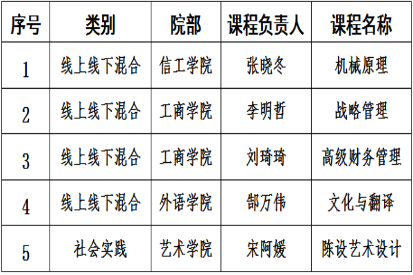 为贯彻落实《河南省教育厅关于实施河南省一流本科课程建设计划的通知》(豫教高〔2019〕166号)文件精神,推进多元教学模式改革,推动和深化课程教学应用,beat365开展2022年线下、线上线下混合式、社会实践精品课程申报立项及评审工作,经教学指导委员会评审,现对2022年度《机械原理》等4门线上线下混合式精品课程、1门社会实践精品课程立项结果予以公示,公示排名不分先后,具体见下表: