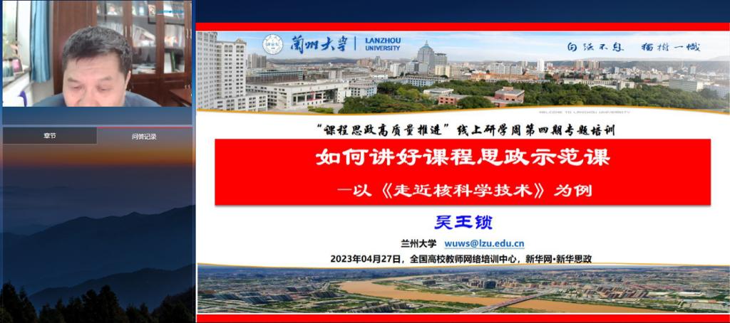 兰州大学吴王锁教授以获批国家级课程思政示范项目《走近核科学技术》课程为例,围绕课程团队基本情况,课程思政总体设计,课程思政教学实践,课程的评价与成效,课程的特色与创新,课程建设计划实施六方面阐述了如何讲好课程思政示范课。