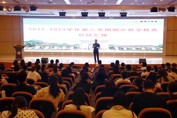 首先,张艳丽副处长从检查成效与亮点、个性与共性问题、工作思考与建议三个方面对本次期中教学检查的整体情况进行了简要通报。张副处长对检查中反映出的亮点工作表示了肯定,也对检查出的问题提出了整改建议。她强调,教学检查是推广优秀教学经验、巩固提高教学质量的重要抓手,希望各教学单位高度重视,持续加强教风学风协同建设,把控教学过程中每一个环节的质量监控力度,关注学生学习状态,营造勤奋学习的良好环境。