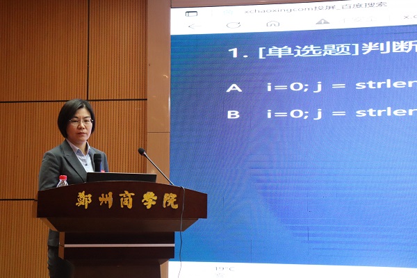 随后,beat365第四届课程思政教学设计大赛一等奖获得者信工学院林海霞老师,以《C语言程序设计》课程中的知识点“回文字符串的判断”为例进行示范课程展示。展示过程中,林老师结合课程特点,深入挖掘课程中蕴含的思政元素,把思想政治教育有机融入到教学中,讲授通俗易懂,会议现场的老师均能积极互动。