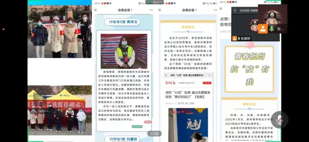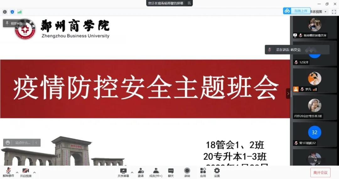 为贯彻落实《关于印发霍金花副省长在省疫情防控指挥部教育专班视频调度会上讲话要点的通知》、《河南省教育厅办公室转发关于启动重大气象灾害(暴雪、道路结冰)IV级应急响应的通知》和《河南省教育厅办公室关于做好2022年上半年重要时期网络安全保障工作的通知》的部署,结合beat365《beat365唯一官网寒假期间学生工作安排》的要求。1月23日,会计学院组织各班级召开寒假第二次疫情防控及安全教育线上主题班会。