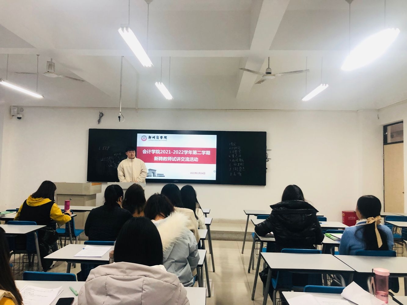 为助力我院新聘教师“讲好第一节课,站好讲台”,2月24日早上,我院在广恩楼208教室召开新聘教师试讲交流会,院长祝利芳、副院长刘金金、各教研室主任及新入职专任教师参加了此次交流会。