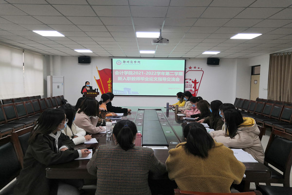 2022年3月21日下午,会计学院在会议室103召开了2021-2022学年第二学期青年导师助教制活动之新入职教师毕业论文指导交流会,会计学院院长祝利芳、副院长刘金金及本学年新入职教师及其导师参加了此次会议。此次会议由论文组苗稳老师主持。