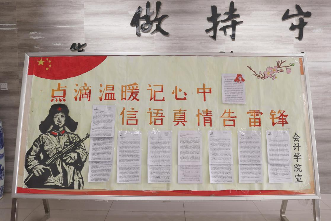 3月10日至3月13日,会计学院学生第三党支部开展了“点滴温暖记心中,信语真情告雷锋”信件征集活动,会计学子们通过真情话语告白雷锋,用铿锵文字来传承雷锋精神。用他们的青春的话语,娟秀的字迹来书写他们对雷锋精神的理解,通过句句真情话语来告白雷锋,写下青春的生动注脚,永葆雷锋的宝贵精神品质。