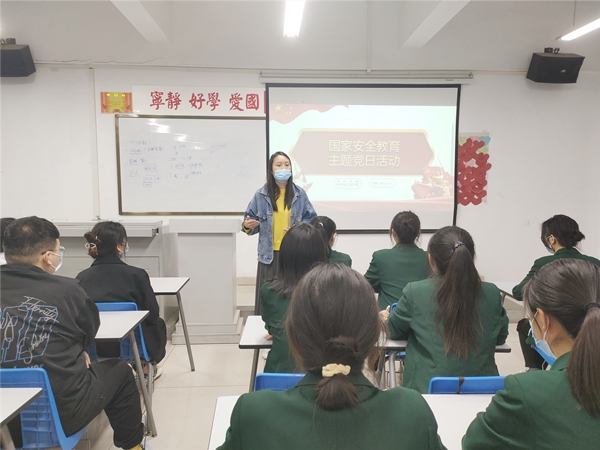 会上,王佳同志提出关于国家安全方面的问题,由各位参会人员进行解答,通过对国家安全的初步学习,使在场的每位同学深刻认识到国家安全与每位公民息息相关。孙柳阳同志组织同学们观看了“千万师生同上一堂国家安全教育课”,通过观看公开课,实现了集体学习和个人自学的有机结合,增强了学生对目前国家安全范畴的多方位了解,使学生充分认识到“国安才能治国,治国必须治安”。