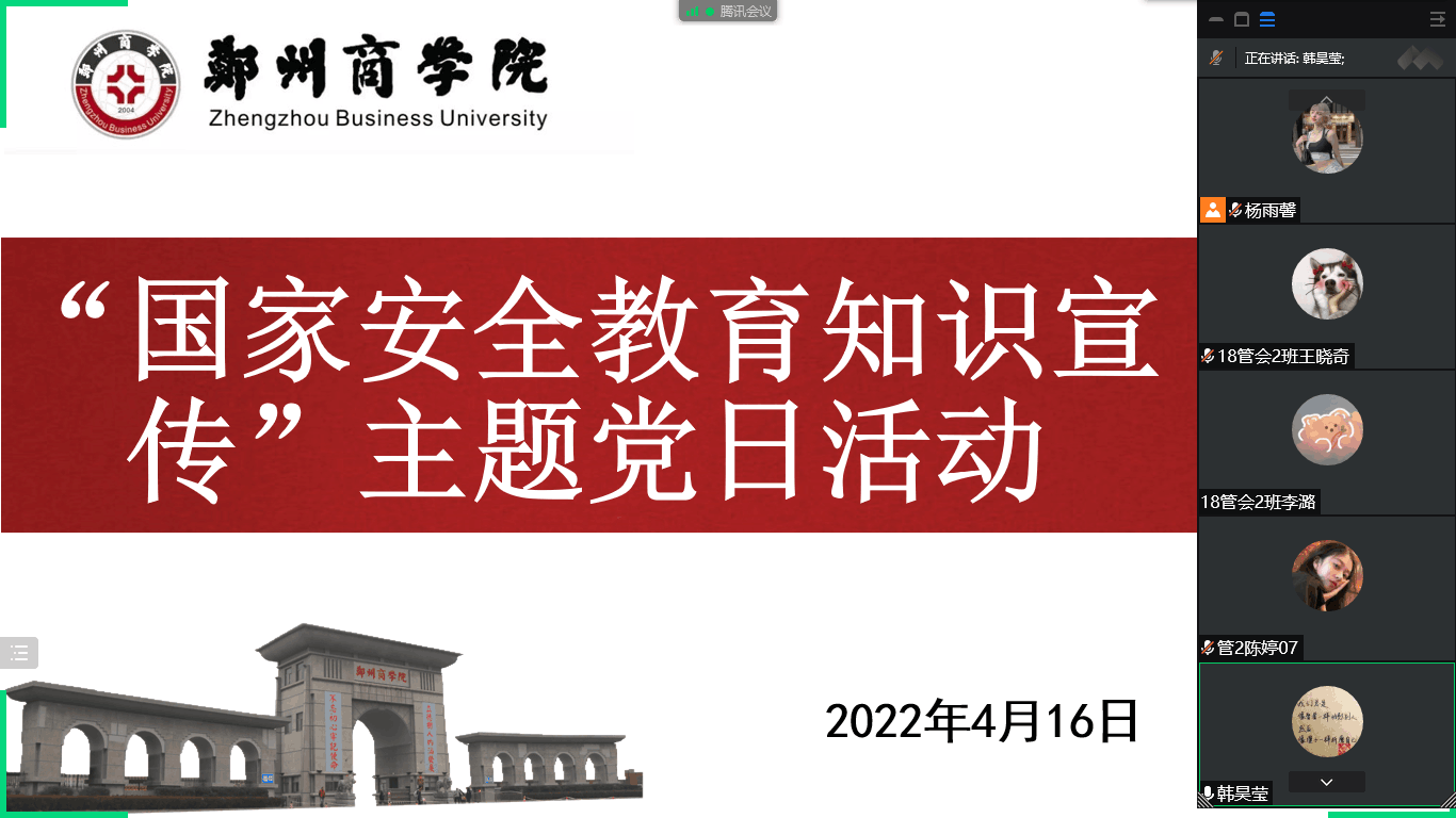 学习宣传贯彻国家安全教育,是新时期维护国家安全的客观要求,维护国家安全,起到了基础性保护作用。为深入贯彻落实国家安全教育的学习宣传工作,全面推进社会主义法治建设进程,增强党员学法知法懂法用法意识,吸引党员投身法治宣传教育实践活动,不断提升法治意识,会计学院学生第五党支部特举办此次“国家安全教育知识宣传”主题党日活动。