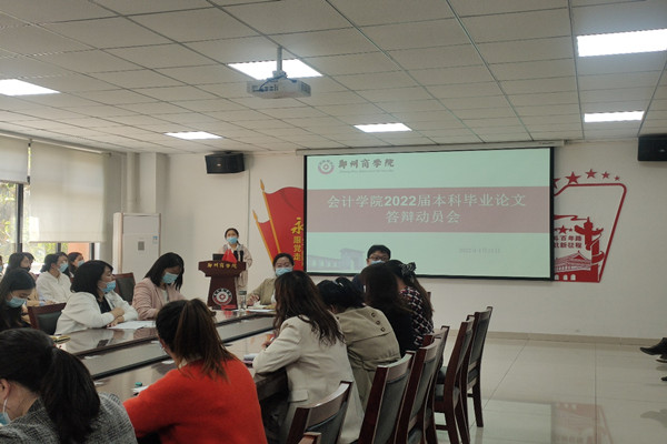 为落实应用型创新人才的培养,检验学生实践创新能力,严格把控毕业生论文质量,确保答辩工作顺利进行,4月21日下午,会计学院在广恩楼103会议室召开了2022届本科毕业论文答辩动员会,会计学院院长祝利芳、会计学院党委书记梁鹏、副院长刘金金、全体论文指导教师及答辩秘书参加了此次会议。
