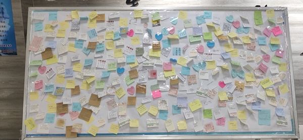 活动以便利贴形式开展,书写爱国心声,会计学院以班级为单位进行便签收集,筛选具有代表性的优秀标签粘贴在广恩楼大厅的白板上进行展示。活动中,同学们踊跃加入其中,在便利贴上留下句句优质、语言积极向上,写到心坎里的爱国语句。同时,在书写过程中加强了作为中华儿女对祖国的幸福感、自豪感。