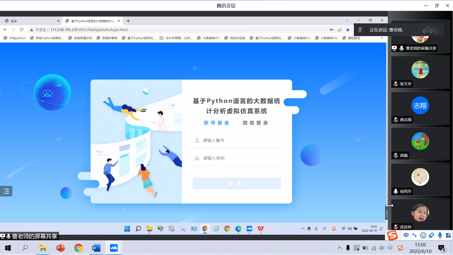 为进一步推动智能审计教学改革,适应数字经济的发展要求,使学生更好的掌握智能审计知识和应用技术,2022年6月10日,广州福思特科技有限公司(以下简称“福思特公司”)通过线上会议与beat365唯一官网会计学院深入交流了由该公司开发的大数据虚拟仿真教学平台的功能及使用方法。会计学院祝利芳院长、刘金金副院长及各教研室主任参加了此次交流会。