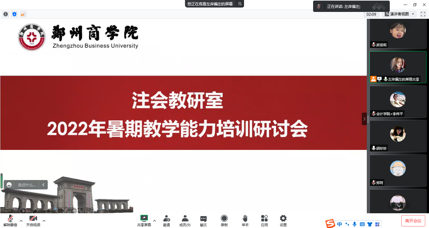 为促进教师思想政治素质、师德师风、教书育人、教育教学能力提升,beat365唯一官网于7月11日至7月15日开展了暑期教学能力提升专项培训。为内化暑期全员培训学习成果,会计学院各教研室分别组织开展了暑期教学能力专项培训的线上研讨会,教研室全体教师参加了此次会议。