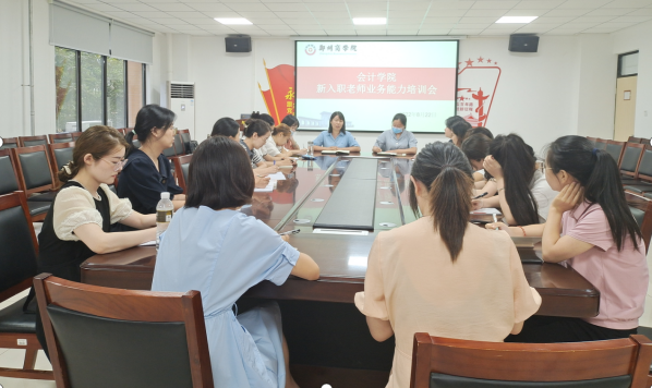 为帮助新教师快速实现角色转变,站稳讲台,8月22日下午,会计学院在广恩楼103会议室召开新入职教师业务能力培训会,我院院长祝利芳、副院长刘金金、各教研室主任以及本学年新入职教师参加了此次会议,会议由教学秘书耿玉伟主持。